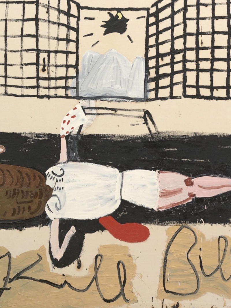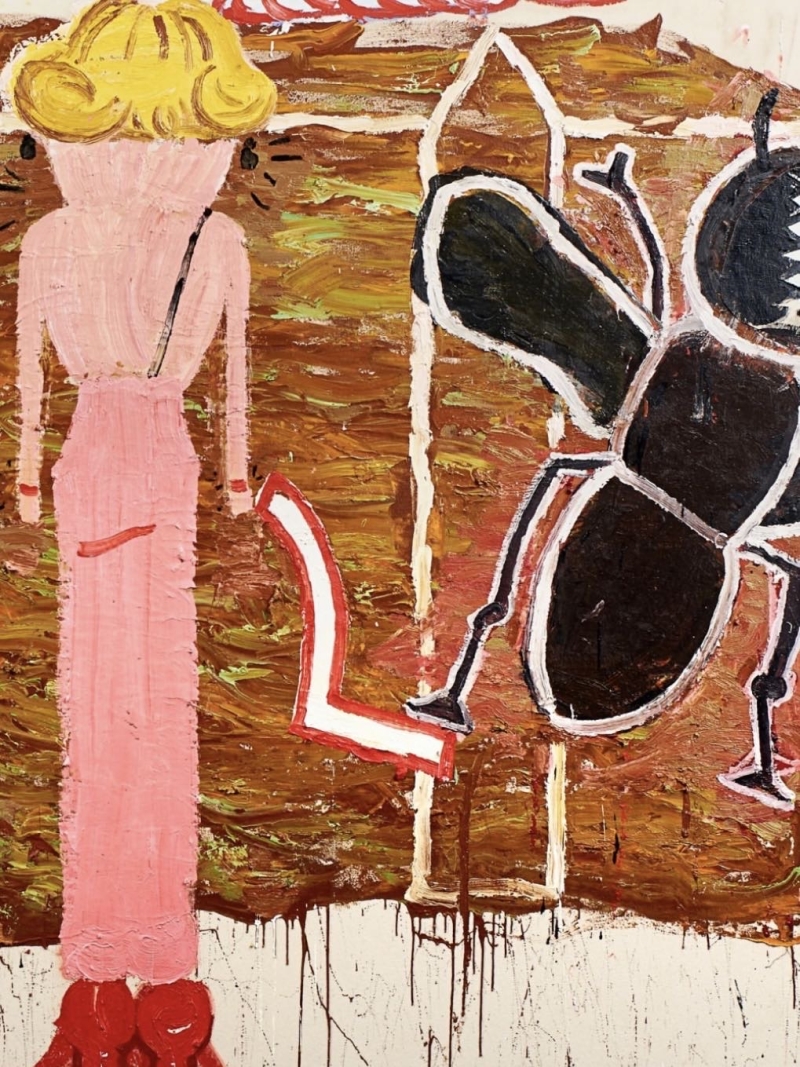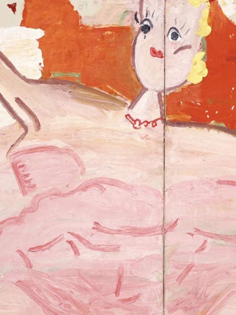 ◾️关于艺术家: Rose wylie 是一位在七十多岁才获得国际关注的传奇英国艺术家,她通过一种被称作“伪天真”的视觉语言,在巨大的画布上构建起跨越流行文化与私人记忆的艺术世界。她坚信画面的视觉存在优于任何深层寓意,因此在创作中刻意摒弃精致的修饰,转而使用直率、甚至带有粗颗粒感的笔触来捕捉电影画面、新闻符号或二战时期的童年往事。这种将文字、拼贴碎片与绘画融为一体的风格,反映了她对绘画物质过程的诚实记录,也展示了她如何在深厚的学院功底之上,通过对传统美学规则的解构来追求艺术表达的绝对自由。