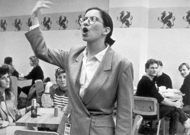 在形式上,Fraser 常采用表演与角色扮演的方式进入机构语境。她的代表作《Museum Highlights: A Gallery Talk》(1989)中,她扮演一位博物馆讲解员,对看似普通的空间(如洗手间或公共区域)进行夸张且学术化的讲解。这一行为揭示了语言如何赋予事物价值,使观众重新思考“什么是艺术”以及“价值从何而来”。在其后续创作中,Fraser 持续探讨艺术与资本、权力之间的关系。她的作品往往将观众、艺术家与机构置于同一结构之中,揭示参与者在系统中的位置与角色,从而使观看成为一种自我反思的过程。她通过这种方式,将艺术从形式表达转向对制度本身的批判与解构。
