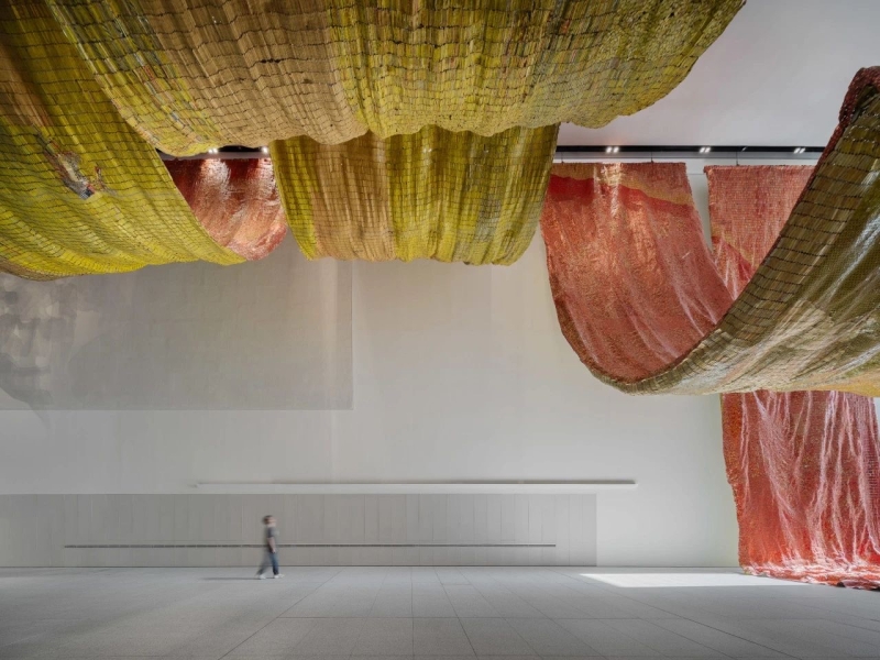 ◾️关于展览: 浦东美术馆与泰特美术馆的最新合作项目“艾尔·阿纳祖:红月之后”(El Anatsui: After the Red Moon)在浦东美术馆正式开启首次全球巡展。这件由加纳艺术家艾尔·阿纳祖所创作的宏伟装置分三幕呈现。倾泻而下的金属悬挂物不仅重塑了浦东美术馆独一无二的展览空间——中央展厅,同时也首次运用了入口的大厅空间。本次展览最初为伦敦泰特现代美术馆2023至2024年的“现代委托”项目构思并创作,名为“艾尔·阿纳祖:红月背后”。 作为当今最有影响力的艺术家之一,艾尔·阿纳祖曾在2015年第56届威尼斯双年展上荣获终身成就金狮奖。“艾尔·阿纳祖:红月之后”是浦东美术馆自开馆以来所举办的规模最大的装置展。整个装置由数以万计的被重新利用的瓶盖和金属碎片构成。它们经过手工揉捏、碾压,并用铜线巧妙串联,形成兼具灵活性和适应性的独特组合,带来崇高的视觉冲击。这些起伏、变幻的形式构成了艺术家迄今为止最大的作品,贯穿于美术馆广阔的内部空间中,它们不仅映射出人类历史的深远,还唤起了自然界的原始力量。