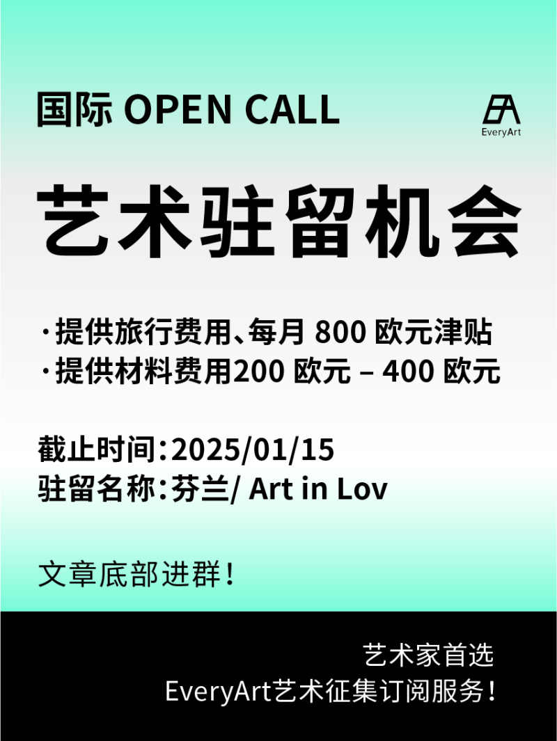 2024-12-22 临期|征集资讯 #艺术驻留 #国际艺术驻留 0 评论 161 喜欢 分享 知鱼 自我介绍一下吧~ 查看TA的全部内容 +关注 EveryArt 去发现更多有趣内容 微信扫码打开EveryArt小程序 体验更多「EveryArt」新功能 评论 0 我也来讲两句