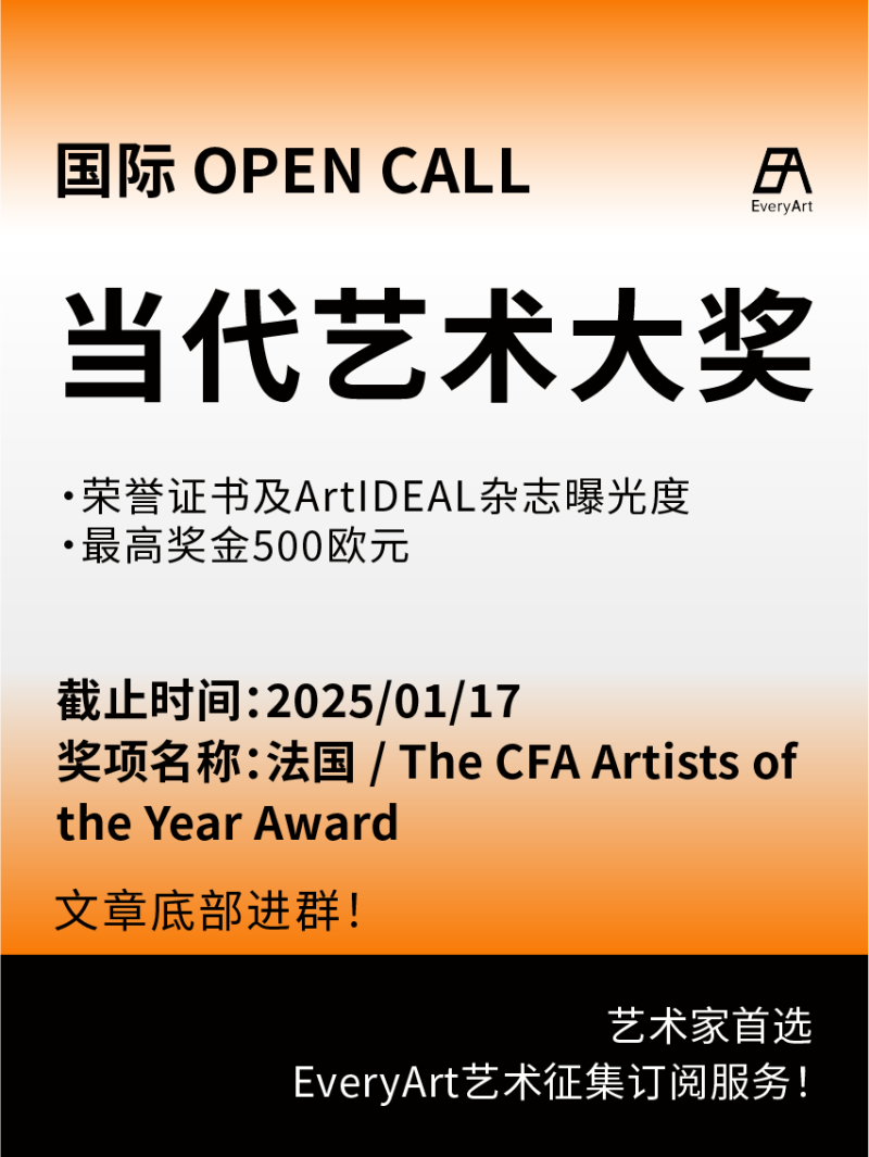 2024-12-23 全球|艺术奖项 #艺术大奖 #国际艺术大奖 0 评论 131 喜欢 分享 Carol Wei 自我介绍一下吧~ 查看TA的全部内容 +关注 EveryArt 去发现更多有趣内容 微信扫码打开EveryArt小程序 体验更多「EveryArt」新功能 评论 0 我也来讲两句