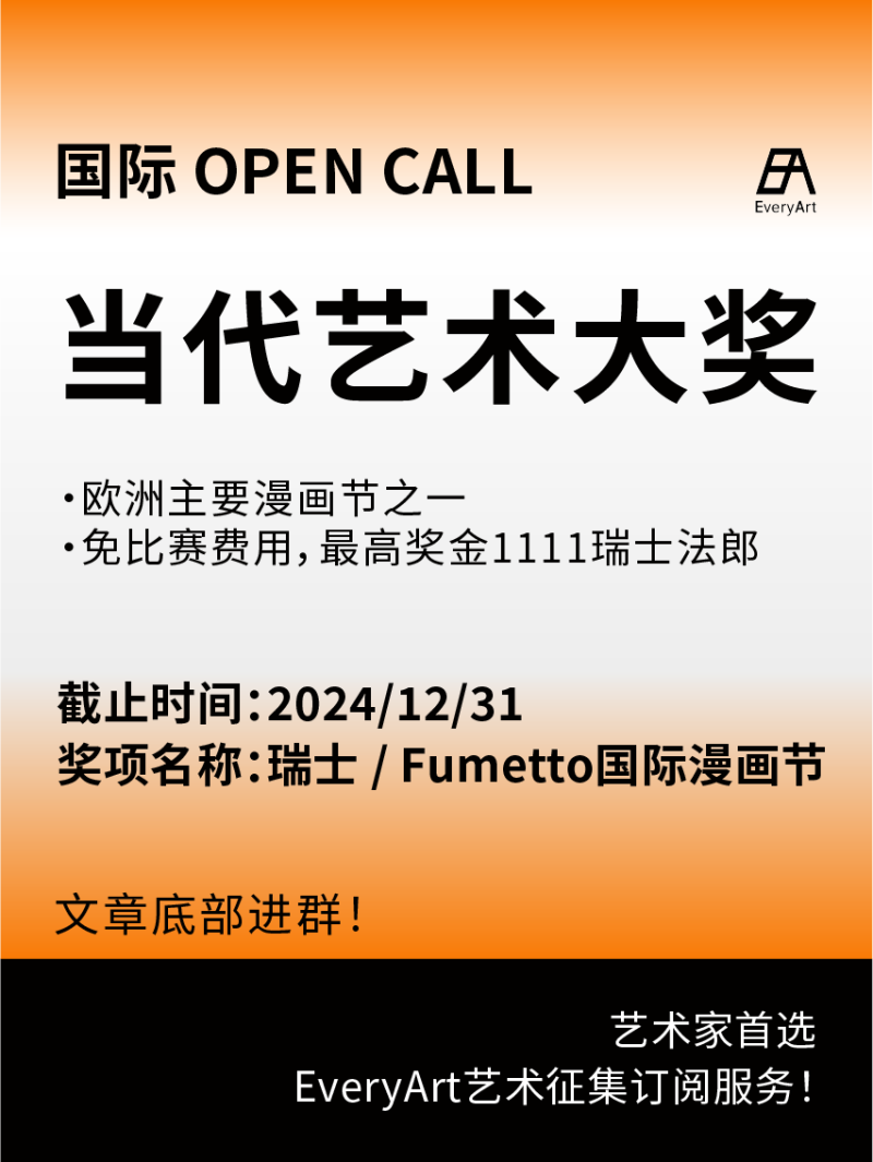 2024-12-23 全球|艺术奖项 #艺术大奖 #国际艺术大奖 0 评论 129 喜欢 分享 Carol Wei 自我介绍一下吧~ 查看TA的全部内容 +关注 EveryArt 去发现更多有趣内容 微信扫码打开EveryArt小程序 体验更多「EveryArt」新功能 评论 0 我也来讲两句