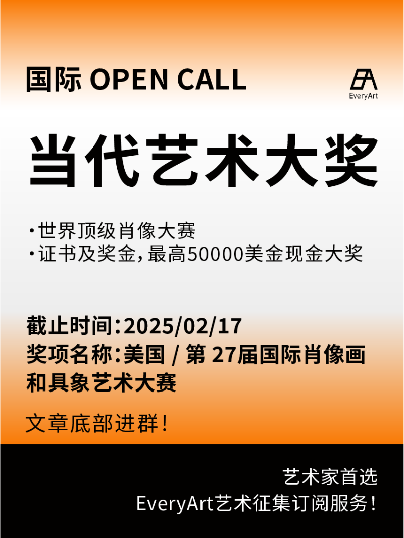 2024-12-24 全球|艺术奖项 #艺术大奖 #国际艺术大奖 0 评论 131 喜欢 分享 Carol Wei 自我介绍一下吧~ 查看TA的全部内容 +关注 EveryArt 去发现更多有趣内容 微信扫码打开EveryArt小程序 体验更多「EveryArt」新功能 评论 0 我也来讲两句