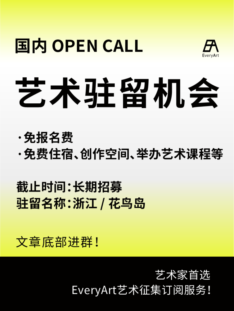2025-01-12 全球|艺术驻留 #国内艺术驻留 #艺术驻留 0 评论 104 喜欢 分享 知鱼 自我介绍一下吧~ 查看TA的全部内容 +关注 EveryArt 去发现更多有趣内容 微信扫码打开EveryArt小程序 体验更多「EveryArt」新功能 评论 0 我也来讲两句