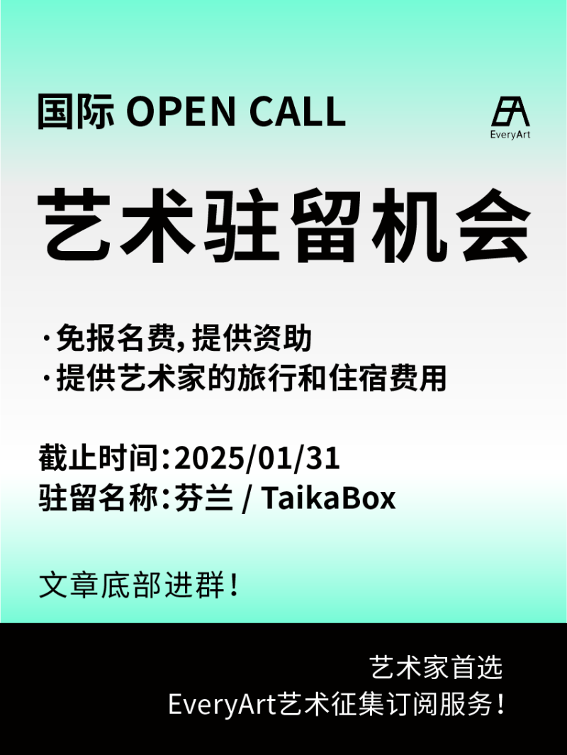 2025-01-14 临期|征集资讯 #艺术驻留 #国际艺术驻留 0 评论 123 喜欢 分享 知鱼 自我介绍一下吧~ 查看TA的全部内容 +关注 EveryArt 去发现更多有趣内容 微信扫码打开EveryArt小程序 体验更多「EveryArt」新功能 评论 0 我也来讲两句