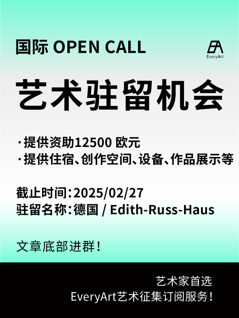 2025-02-01 临期|征集资讯 #艺术驻留 #国际艺术驻留 0 评论 108 喜欢 分享 知鱼 自我介绍一下吧~ 查看TA的全部内容 +关注 EveryArt 去发现更多有趣内容 微信扫码打开EveryArt小程序 体验更多「EveryArt」新功能 评论 0 我也来讲两句