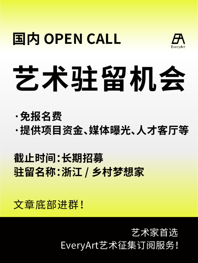 2025-02-01 全球|艺术驻留 #艺术驻留 #国际艺术驻留 0 评论 141 喜欢 分享 知鱼 自我介绍一下吧~ 查看TA的全部内容 +关注 EveryArt 去发现更多有趣内容 微信扫码打开EveryArt小程序 体验更多「EveryArt」新功能 评论 0 我也来讲两句