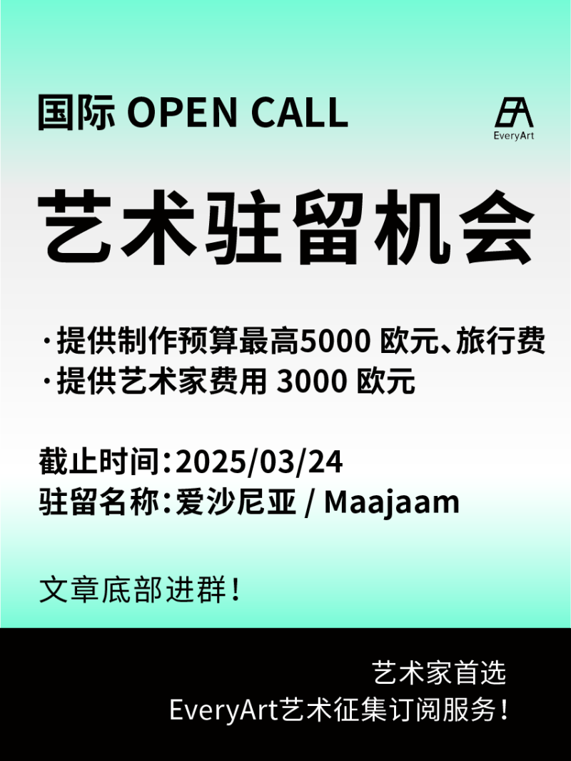 2025-03-06 临期|征集资讯 #艺术驻留 #国际艺术驻留 0 评论 102 喜欢 分享 知鱼 自我介绍一下吧~ 查看TA的全部内容 +关注 EveryArt 去发现更多有趣内容 微信扫码打开EveryArt小程序 体验更多「EveryArt」新功能 评论 0 我也来讲两句