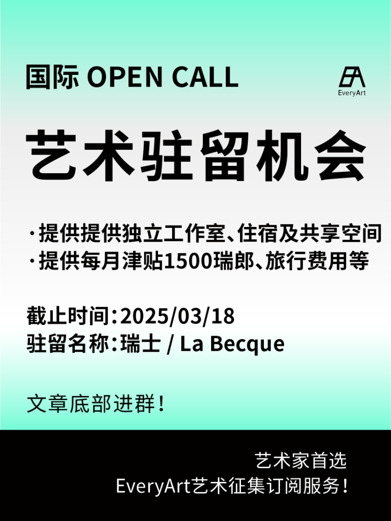 2025-03-06 临期|征集资讯 #艺术驻留 #国际艺术驻留 3 评论 120 喜欢 分享 知鱼 自我介绍一下吧~ 查看TA的全部内容 +关注 EveryArt 去发现更多有趣内容 微信扫码打开EveryArt小程序 体验更多「EveryArt」新功能 评论 3 EveryArt® 2025-03-16 156 上方🔝有驻留指南原文件,注意查看 EveryArt® 2025-03-16 198 申请网址:https://labecque.ch/residences/ 赵浥 2025-03-17 149 很好的机会,希望能参与。 我也来讲两句