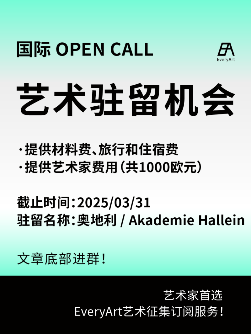 2025-03-11 临期|征集资讯 #艺术驻留 #国际艺术驻留 0 评论 97 喜欢 分享 知鱼 自我介绍一下吧~ 查看TA的全部内容 +关注 EveryArt 去发现更多有趣内容 微信扫码打开EveryArt小程序 体验更多「EveryArt」新功能 评论 0 我也来讲两句