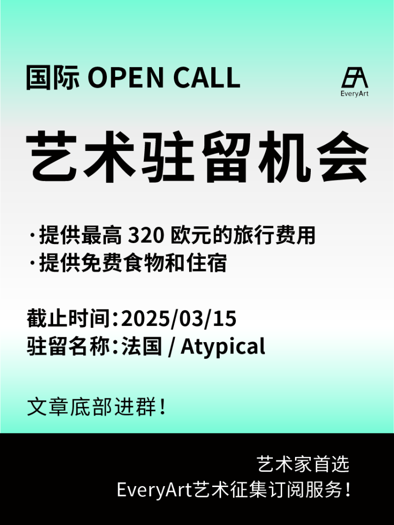 2025-03-13 临期|征集资讯 #艺术驻留 #国际艺术驻留 0 评论 116 喜欢 分享 知鱼 自我介绍一下吧~ 查看TA的全部内容 +关注 EveryArt 去发现更多有趣内容 微信扫码打开EveryArt小程序 体验更多「EveryArt」新功能 评论 0 我也来讲两句