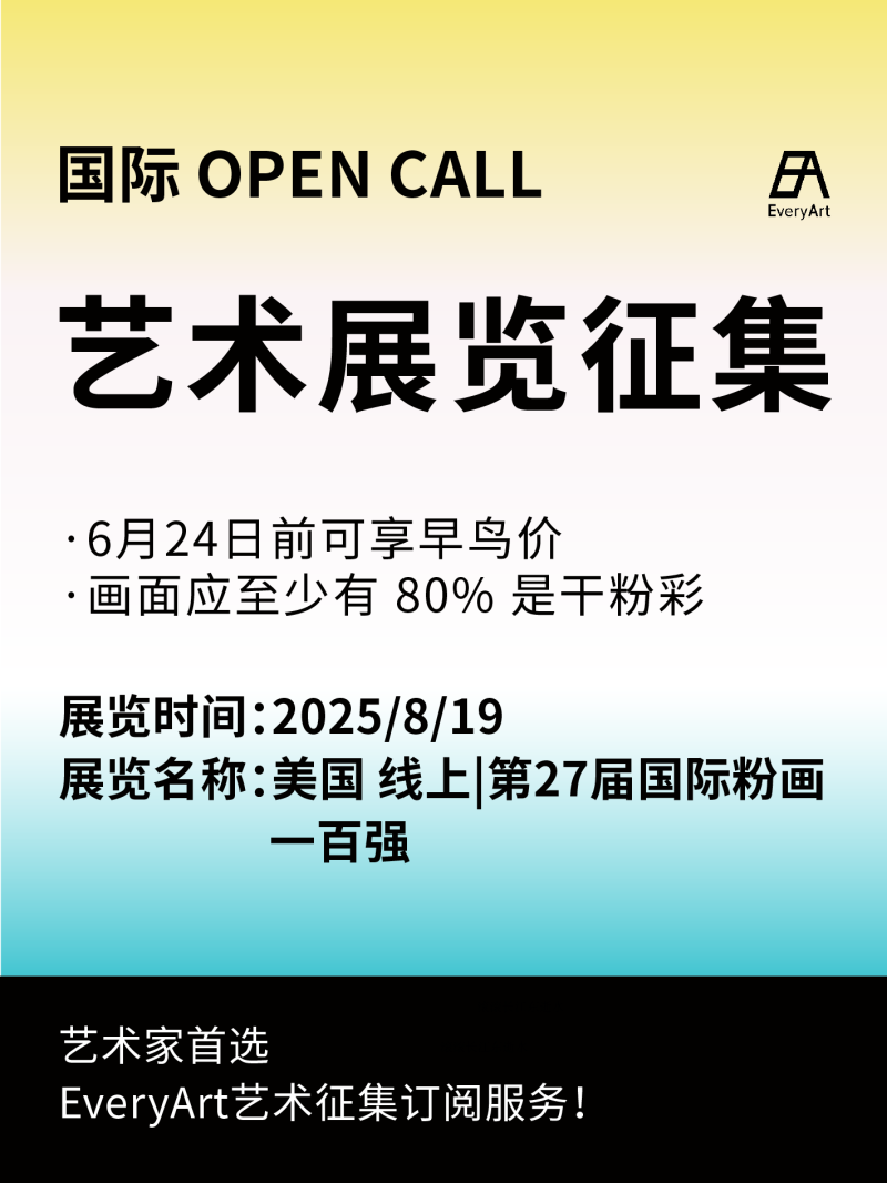 2025-03-27 临期|征集资讯 #国际 #国际艺术征集 #国际艺术大奖 0 评论 109 喜欢 分享 齐 自我介绍一下吧~ 查看TA的全部内容 +关注 EveryArt 去发现更多有趣内容 微信扫码打开EveryArt小程序 体验更多「EveryArt」新功能 评论 0 我也来讲两句
