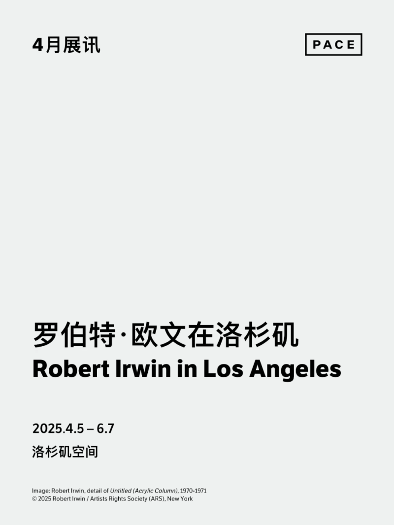 ◾ 展览信息: ◽「罗伯特·欧文在洛杉矶」(Robert lrwin in Los Angeles) ◽艺术家:罗伯特·欧文(Robert Irwin) ◽展期:2025.04.5 - 2025.06.7 ◽空间:佩斯 - 洛杉矶 ◽地址:1201 South La Brea Avenue,Los Angeles