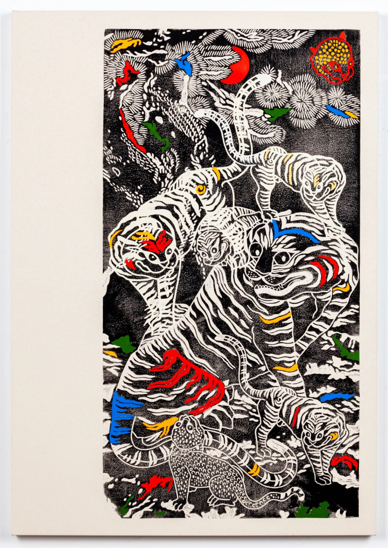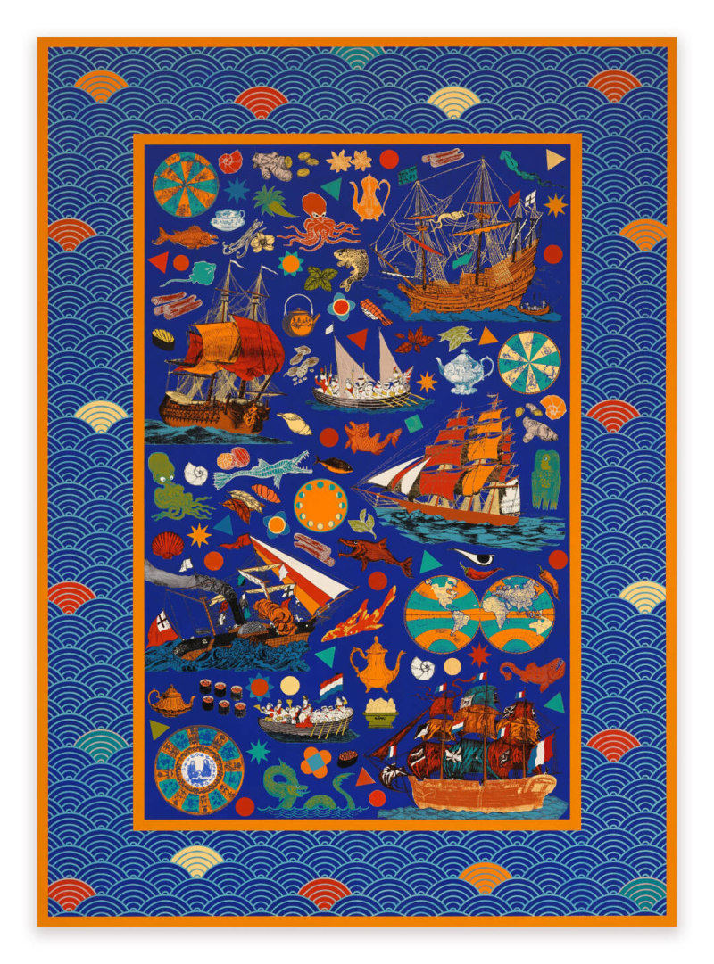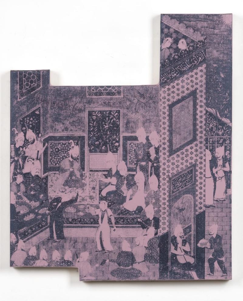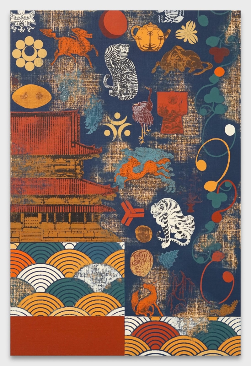 Pour 汲取了众多文化和时期的艺术形式和技法,以其真正的全球视野,将具象意象、抽象图案和装饰元素交织在一起,创造出兼具古代、古典与当代的全新混合艺术作品,融合了来自伊朗、英国、埃及、印度和中国等国的多元影响。Kour 对图像和创作过程的融合,常常将不同的艺术史串联起来,试图凸显促成艺术创新的文化交流,并打破单一原创性的固有观念。