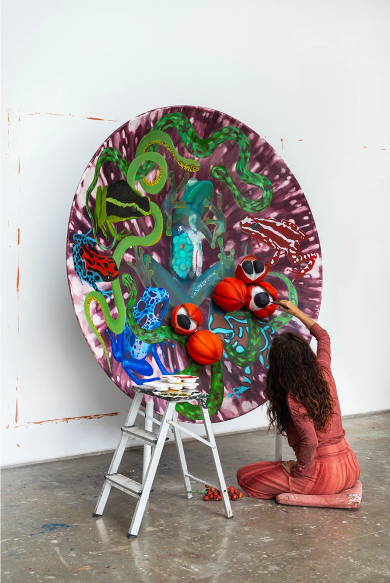 在「Don’t Forget, We Come From the Tropics」中,Adriana Varejão通过新近的绘画与雕塑创作,探讨了亚马逊雨林在生态、艺术与文化中的关键地位。展览首次呈现了艺术家《Plate》系列(2011–)的最新创作,这些作品与博物馆馆藏的历史瓷盘并置展出,以此对既有的审美等级秩序进行反思。 与此同时,在博物馆正门外,一条以玻璃纤维制成、色彩斑斓的亚马逊巨型森蚺(sucuri)缠绕在Anna Hyatt Huntington(安娜·海雅特·亨廷顿,1876-1973)于1927年完成的骑马铜像《El Cid》上,Varejão亦藉此质疑帝国主义、男性霸权以及人类在自然中的支配地位。