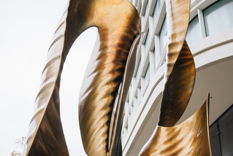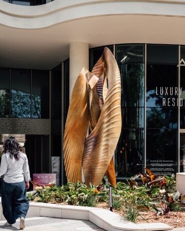 Richard Sweeney是一位以开创性工作闻名的艺术家,他的作品模糊了艺术与设计的界限。他擅长材料探索领域,尤其对纸张情有独钟。他运用复杂的折叠技术,创造出反重力却又保持精致轻盈的造型。他的灵感来源于大自然中的有机形状和图案——贝壳、鸟类、波浪和树叶,他将这些图案转化为大型雕塑,既抽象又优雅。艺术家将自然形态转化为宏伟作品的能力为他赢得了全球认可。 《景观》的匠心工艺确保了作品既保留了艺术家纸质设计的轻盈感,又足够坚固,适合永久性公开展示。最终呈现的是一件动态且引人入胜的艺术作品,邀请北悉尼社区探索其复杂的形态,从而在城市空间与自然环境之间建立更深的联系。Sweeney《景观》证明了艺术家将艺术与自然相结合的能力,为Aqualand区域创造了一个持久的焦点。