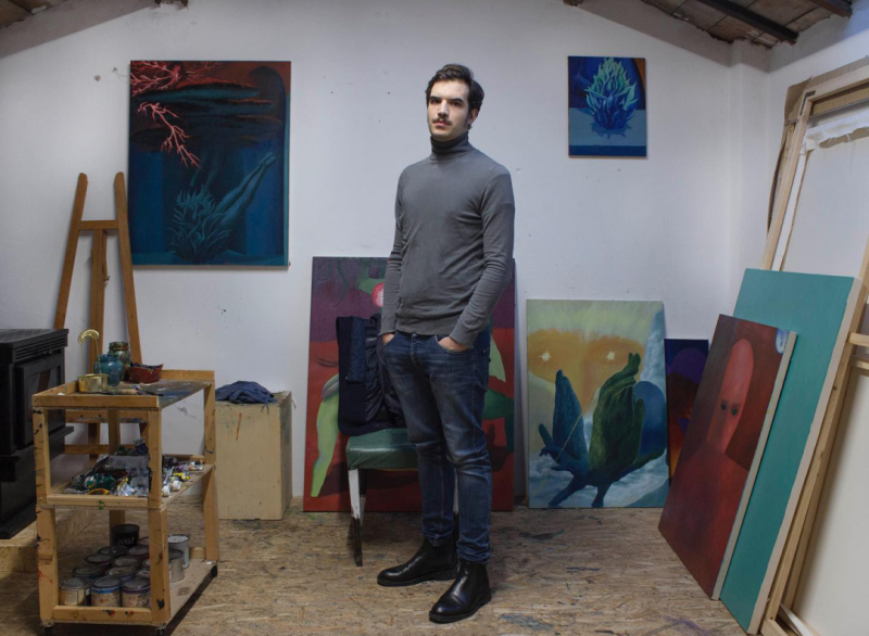 ◾关于艺术家: 亚历山大·弗戈 Alessandro Fogo,1992 年出生于特耶內市,意大利。现生活和工作在于圣贝内代托-德尔特龙托。弗戈在获得威尼斯建筑大学( IUAV)视觉艺术学院的学士学位后,于 2017 年在比利时安特卫普皇家美术学院获得绘画专业的硕士学位。弗戈的绘画实践探索了神话的这一历史功能,意在解析其对当代生活的启示性。他的绘画主要取材于古老的意大利民间神话以及历史上人们对信仰的外在表现形式。他融合神话的幻想与现代生活中的形象,通过独特的叙述方式进行改变和再创造,使画面富有灵见和逸事的特质。 弗戈的个展包括:“圣显”,Gallery Vacancy,上海,2023;“Hang a crocodile outside for the unbelievers”,Cassina Projects,米兰,2023;“Black Morning”,双人展Alessandro Fogo & Paola Angelini,Lyles & King Gallery,纽约,2022;“Skins and leathers”,PM/AM Gallery,伦敦,2022;“Alla luce del sole,un attimo prima di spegnersi”,Galleria Annarumma,那不勒斯,2021。过往群展:“Pittura Italiana Oggi” 米兰三年展,米兰,2023;“Dreamcatcher”,beacon,慕尼黑,2022;“Domani Qui Oggi”,Quadriennale di Roma,罗马,2021;“If on a winter’s night a traveller”,MAMOTH,伦敦, 2020,“Immersione Libera”,Bagni Misteriosi,Galleria Continua, 米兰,2019。近期获奖及驻留包括:Nordisk Kunstnarsenter Dale艺术驻留,挪威,2021;2019年意大利Combat Prize绘画一等奖;及2018年意大利拉古纳国际艺术奖绘画一等奖。