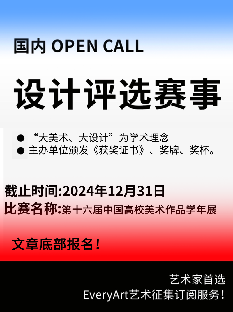 2024-10-04 临期|征集资讯 #艺术大奖 #设计大奖 #艺术赛事 0 评论 140 喜欢 分享 Shay Yan 自我介绍一下吧~ 查看TA的全部内容 +关注 EveryArt 去发现更多有趣内容 微信扫码打开EveryArt小程序 体验更多「EveryArt」新功能 评论 0 我也来讲两句