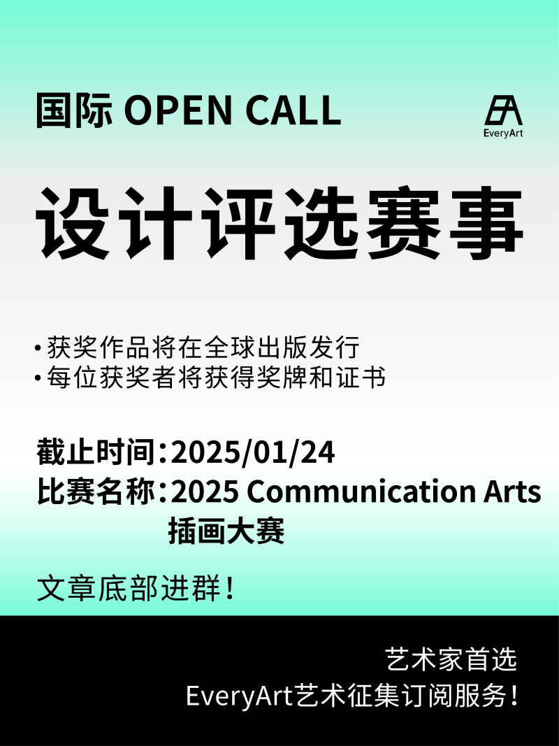 ⬛️作品提交 ◻️>1、各类别的具体要求详见:https://www.commarts.com/content/files/competitions/Illustration2025_Categories.pdf ◻️>2、大赛投稿链接:https://commarts.secure-platform.com/a ◻️>3、大赛官网:https://www.commarts.com/competition/2025-illustration 注:所有参赛者均授权Illustration Competition在the Communication Arts 网站和用于宣传杂志、比赛和/或未来相关推广活动的
