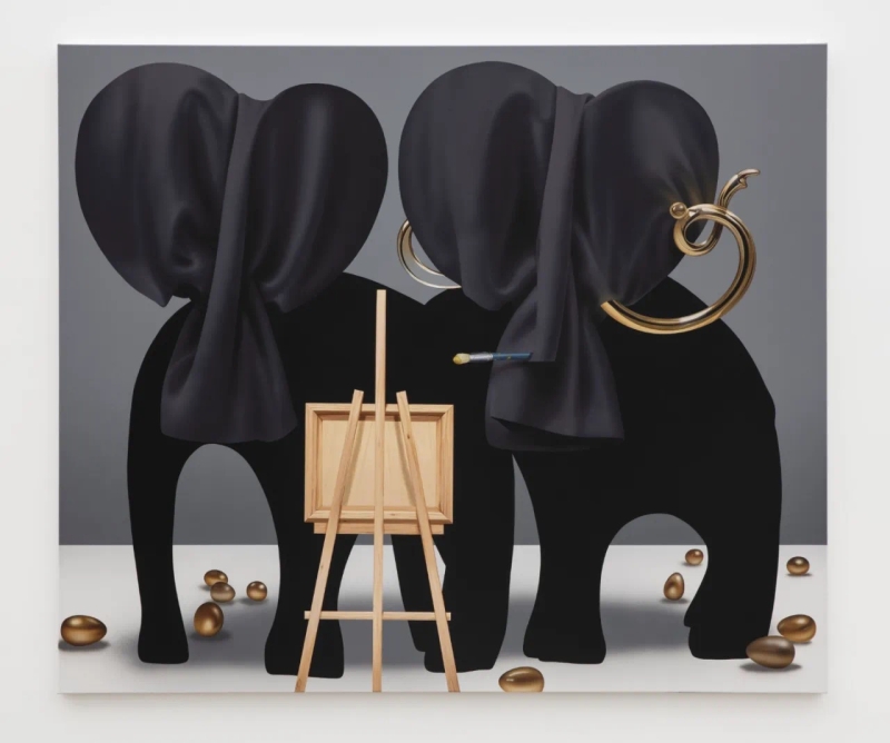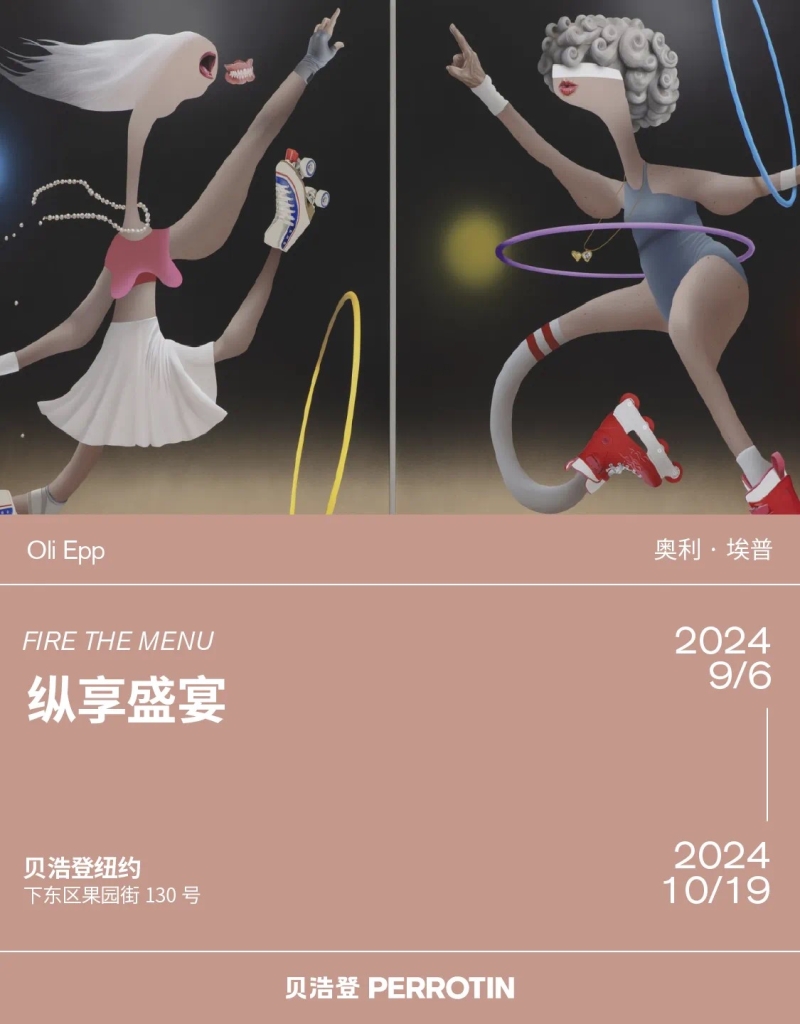 ◾️关于展览: 贝浩登(纽约)欣然呈现伦敦艺术家奥利·埃普的第二次个展“纵享盛宴”。此次展览展出了埃普的全新系列超现实主义绘画,他将穷奢极欲的世界描绘成戏剧性的表演,捕捉了隐藏于我们无尽欲望之下的未言悖论。 奥利·埃普的厨房是其想象世界的缩影。在具有收藏价值的 Bill Bell McDonald's 盘子和猫形设计师茶壶之间,有一个精致的木制储藏室,从地板到天花板都装满了糖果。架子上摆满了猕猴桃味的软糖、果冻绳、小块巧克力,甚至还有一台装满花生M&M巧克力的糖果机器。埃普微笑着热情邀请来访者随意取用。这一场景象征着埃普的艺术作品,糖果的亮丽色彩和即刻满足正如他画作中的诱人表面和迷人的细节。然而,在这甜蜜的外壳之下,隐藏着对欲望、消费与当代生活中稍纵即逝的快乐的深刻反思。