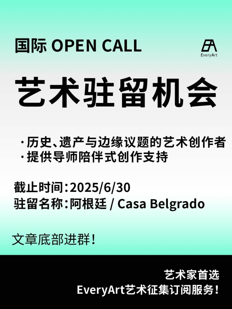 2025-06-13 临期|征集资讯 #艺术驻留 #国际艺术驻留 0 评论 75 喜欢 分享 白雪松 自我介绍一下吧~ 查看TA的全部内容 +关注 EveryArt 去发现更多有趣内容 微信扫码打开EveryArt小程序 体验更多「EveryArt」新功能 评论 0 我也来讲两句