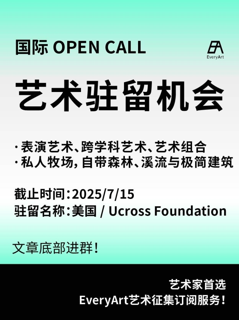 2025-06-17 临期|征集资讯 #艺术驻留 #国际艺术驻留 0 评论 77 喜欢 分享 白雪松 自我介绍一下吧~ 查看TA的全部内容 +关注 EveryArt 去发现更多有趣内容 微信扫码打开EveryArt小程序 体验更多「EveryArt」新功能 评论 0 我也来讲两句