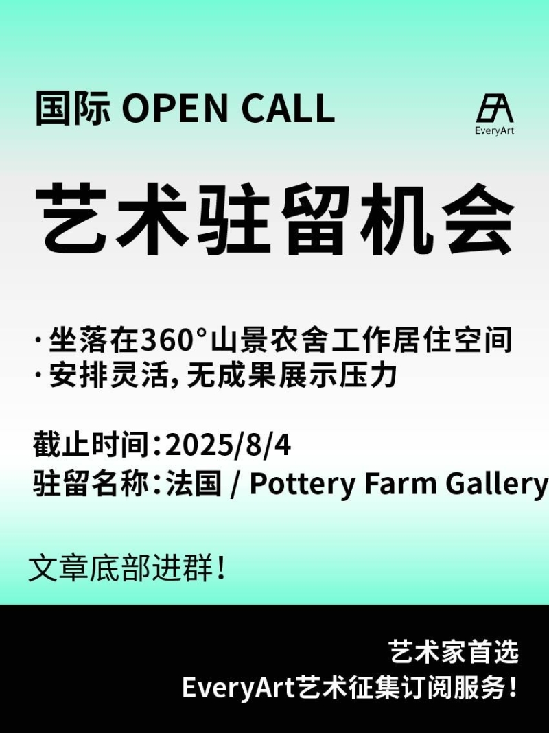 2025-06-20 临期|征集资讯 #艺术驻留 #国际艺术驻留 0 评论 83 喜欢 分享 白雪松 自我介绍一下吧~ 查看TA的全部内容 +关注 EveryArt 去发现更多有趣内容 微信扫码打开EveryArt小程序 体验更多「EveryArt」新功能 评论 0 我也来讲两句
