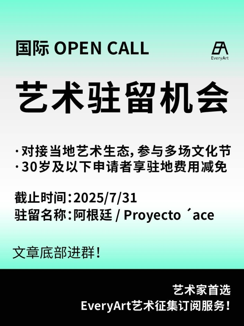 2025-06-20 临期|征集资讯 #艺术驻留 #国际艺术驻留 0 评论 71 喜欢 分享 白雪松 自我介绍一下吧~ 查看TA的全部内容 +关注 EveryArt 去发现更多有趣内容 微信扫码打开EveryArt小程序 体验更多「EveryArt」新功能 评论 0 我也来讲两句