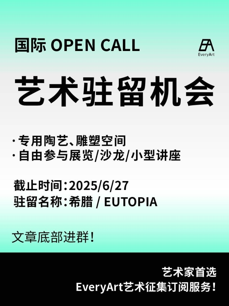 2025-06-25 临期|征集资讯 #艺术驻留 #国际艺术驻留 0 评论 65 喜欢 分享 白雪松 自我介绍一下吧~ 查看TA的全部内容 +关注 EveryArt 去发现更多有趣内容 微信扫码打开EveryArt小程序 体验更多「EveryArt」新功能 评论 0 我也来讲两句