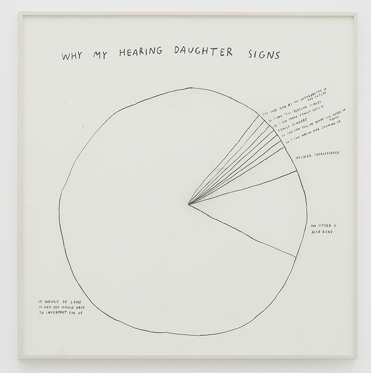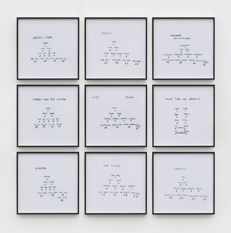 克里斯汀·孙·金(Christine Sun Kim)是一位驻柏林的美国艺术家。在她的实践中,Kim通过解构声音政治,探索口头语言如何作为一种社交货币流通,从而关注到声音在社会中的运作。音乐记谱法、书面语言、信息图表、美国手语(ASL)、身体的使用和巧妙安插的幽默,这些都是她作品中反复出现的元素。通过绘画、表演、影像和大型壁画等媒介,Kim探索了她与口语、人造环境和社会环境、以及与世界的关系。