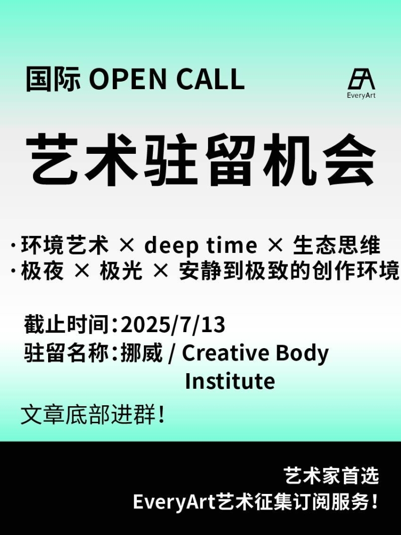 2025-06-29 临期|征集资讯 #艺术驻留 #国际艺术驻留 0 评论 62 喜欢 分享 白雪松 自我介绍一下吧~ 查看TA的全部内容 +关注 EveryArt 去发现更多有趣内容 微信扫码打开EveryArt小程序 体验更多「EveryArt」新功能 评论 0 我也来讲两句
