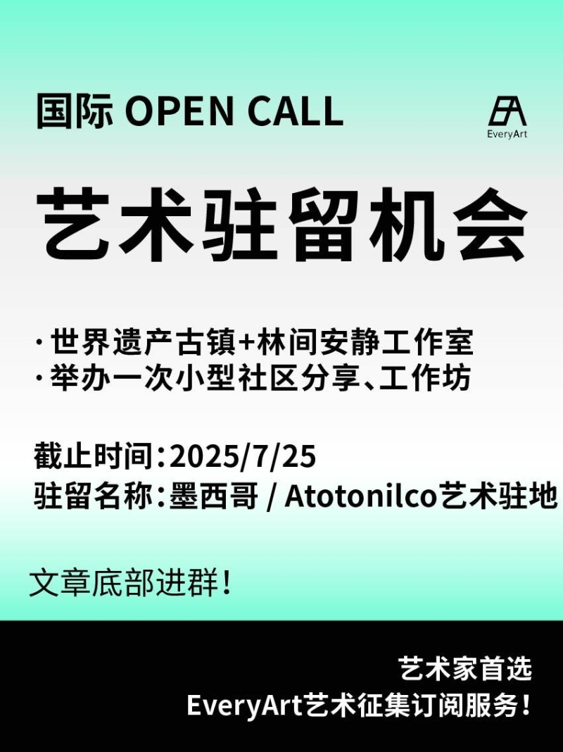 2025-07-01 临期|征集资讯 #艺术驻留 #国际艺术驻留 0 评论 64 喜欢 分享 白雪松 自我介绍一下吧~ 查看TA的全部内容 +关注 EveryArt 去发现更多有趣内容 微信扫码打开EveryArt小程序 体验更多「EveryArt」新功能 评论 0 我也来讲两句