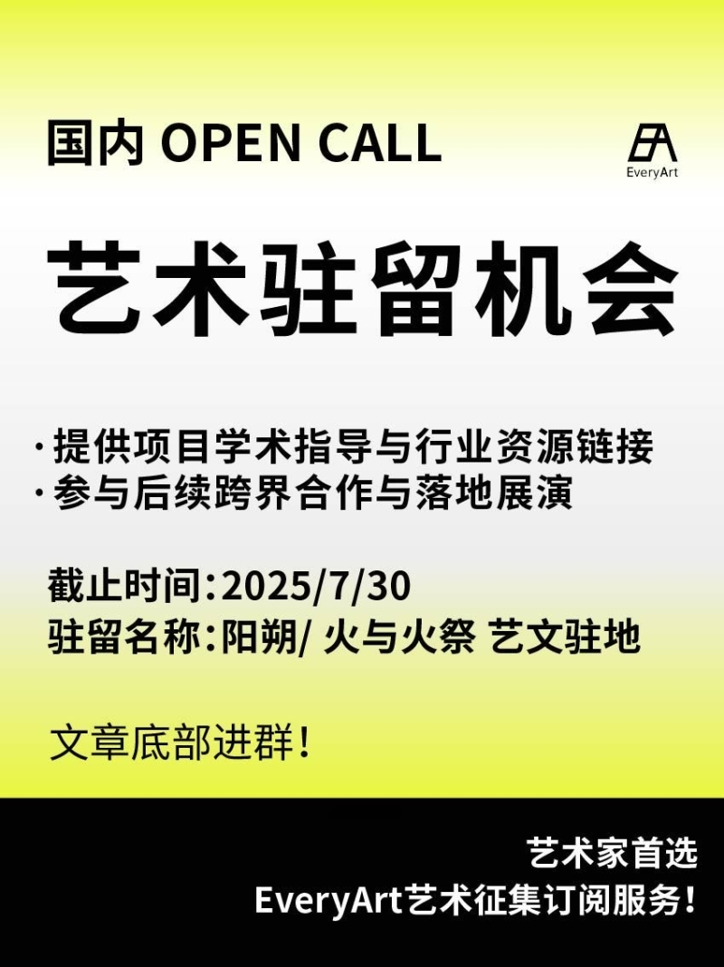 2025-07-02 临期|征集资讯 #国内艺术驻留 #艺术驻留 0 评论 67 喜欢 分享 白雪松 自我介绍一下吧~ 查看TA的全部内容 +关注 EveryArt 去发现更多有趣内容 微信扫码打开EveryArt小程序 体验更多「EveryArt」新功能 评论 0 我也来讲两句