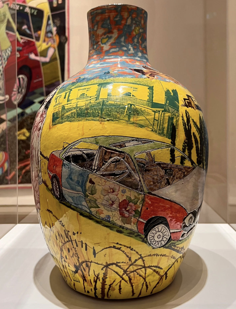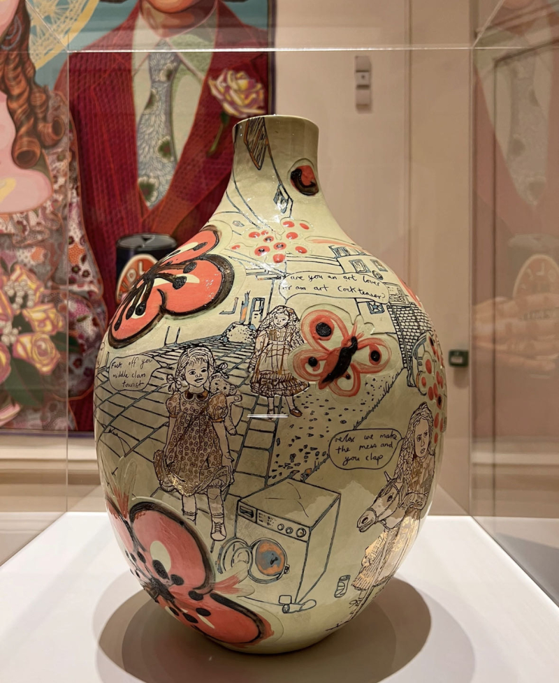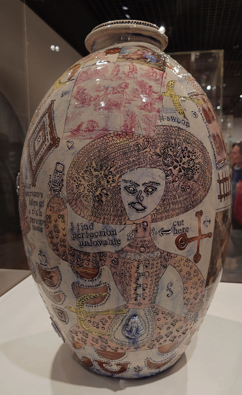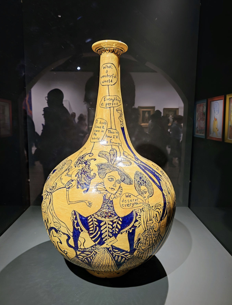 2003年英国特纳奖得主:格雷森·佩里Grayson Perry(1960-) 格雷森·佩里是以为当代英国艺术家,以其陶瓷器皿、印刷挂毯以及为《埃塞克斯之家》的设计而闻名。他的作品包含显著的传记性叙事,经常出现他的另一个自我—克莱尔。他的叙事也记录着他充满波折的童年。 1982年,佩里毕业于朴茨茅斯理工学院,获得美术学士学位。在学院学习过程中,他逐渐开始爱上陶瓷,发展出独特的风格,并探讨性、阶级和英国身份等挑衅主题。从1990年代开始,佩里还从事刺绣工作。例如:1996年创作《Mother of All Battles》等作品,一种缝有民族符号、武器及杀戮图像的女性民族服装。 2003年,佩里获得特纳奖。他的获奖引起了一些争议,不仅因为他是第一个获得该奖项的陶艺家,还因为他倾向于以异装癖的身份出现在公众面前,经常以他的另一个自我克莱尔的身份出现,并经常由他的妻子和女儿陪伴。2004 年,佩里在康沃尔郡的泰特圣艾夫斯现代和当代艺术博物馆举办了个展。展览展出了他形状经典的花瓶,其色彩缤纷的表面为铭刻的图像和信息提供了诱人的伪装,这些图像和信息与装饰媒介明显不同。家庭暴力、虐待儿童、恋童癖和文化刻板印象是艺术家在这些铭文中习惯性地探讨的一些令人不安的主题。佩里也在世界主要的博物馆中举办个展。例如:2006年,匹兹堡的安迪沃霍尔博物馆;2007年,日本金泽的21世纪当代艺术博物馆;2008年,卢森堡MUDAM。 2009年,《The Walthamstow Tapestry》,一件在画廊墙上展开的长达49英寸的纺织品作品,他将一系列细节丰富,装饰灵感来自于传统苏门答腊蜡染,并带有当代消费文化的图像,编排成一个关于人类生活的宏大叙事。2015年,佩里与建筑工作室FAT合作完成了近五年的项目,为英国埃塞克斯州沃伦斯建造了一座度假屋,这是作家阿兰·德·波顿的“生活建筑”组织委托建造的一系列度假屋之一。这座建筑类似于一个大型童话小屋,被设计为虚构人物朱莉·科普的神殿,包括佩里的艺术作品。2017年,佩里在伦敦蛇形画廊举办“Grayson Perry: The Most Popular Art Exhibition Ever!”个展。2020年,在英国巴斯霍尔本博物馆举办“Grayson Perry: The Pre-Therapy Years”个展。 此外,佩里还出版书籍以及制作记录片。2005年,英国第四频道委托佩里制作了一部关于异装癖的电视纪录片。2006年,他出版了一本自传《年轻女孩的艺术家肖像》。佩里随后为第四频道制作了许多纪录片。例如:2012年《All in the Best Possible Taste with Grayson Perry》,《The vanity of Small Differences》;2014年《Who Are You?》研究身份认同,促使伦敦国家肖像馆的一系列肖像画创作;2016年,《Grayson Perry: All Man》探讨英国对男性气质的观念变化;2017年《Grayson Perry: Divided Britain》审视英国脱欧;2018年《Rites of Passage》重新思考英国人如何庆祝重要时刻;2020年《Grayson Perry’s Big American Road Trip》片中他骑摩托车穿越美国,调查种族、阶级和身份。同年,还推出了电视节目《Grayson’s Art Club》,展示了普通英国人在新冠封锁期间创作的艺术作品。