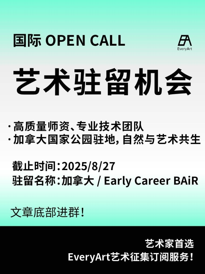 📍项目地点:加拿大班夫艺术中心(Banff Centre for Arts and Creativity) 📅驻地时间:2026年3月2日—4月3日(共5周) 📝申请截止:2025年8月27日 🌐申请链接:https://bit.ly/3FLCUv3 🎨适合什么人? 该项目专为职业初期艺术家设计,欢迎: 毕业5年以内的视觉艺术工作者(含陶艺、版画、数字媒介、绘画、纸艺、摄影、雕塑、装置等) 具备一定自主创作能力,适应自由工作节奏者 希望在国际艺术社区中交流、批评、创作并获得导师反馈者 也欢迎传统知识传承体系中获得同侪认可的创作者申请 ✨优先考虑:从未参加过Banff视觉艺术驻地的艺术家