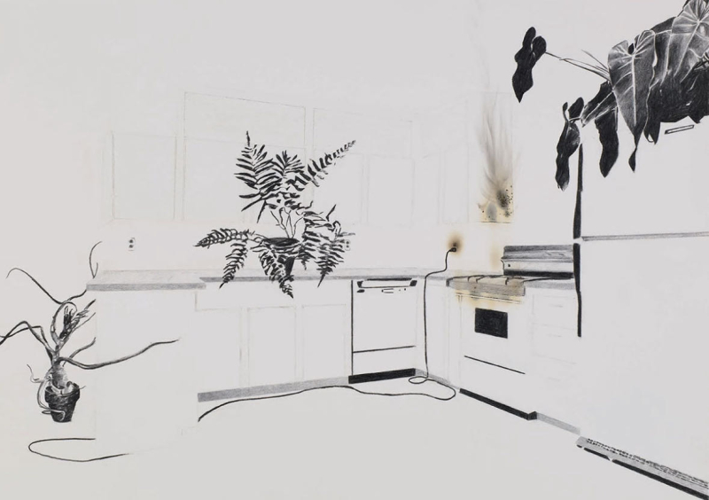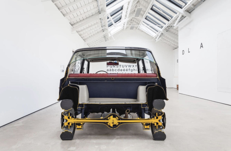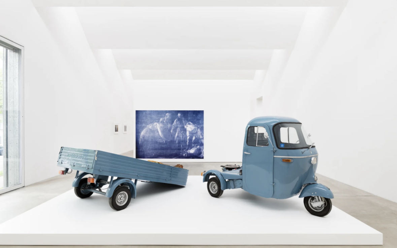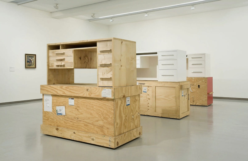 2002年,《Inverted Retrograde Theme, USA (House for a Songbird)》,斯塔林将传统、地理和历史叙事相互重叠,他根据建筑师西蒙-施密德尔于 20 世纪 60 年代初在波多黎各设计的住宅项目制作了建筑模型。该装置的标题源自阿诺德·勋伯格的作曲系统,并采用了作曲家的序列主义技巧,通过镜像结构将这一想法融入到装置中,并进一步继承了勋伯格的想法:将房子颠倒过来,然后将它们钉在天花板上,每个房子都由一根细细的桃花心木树枝平衡。