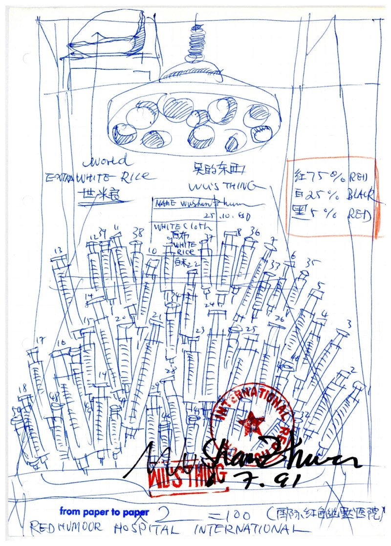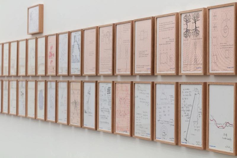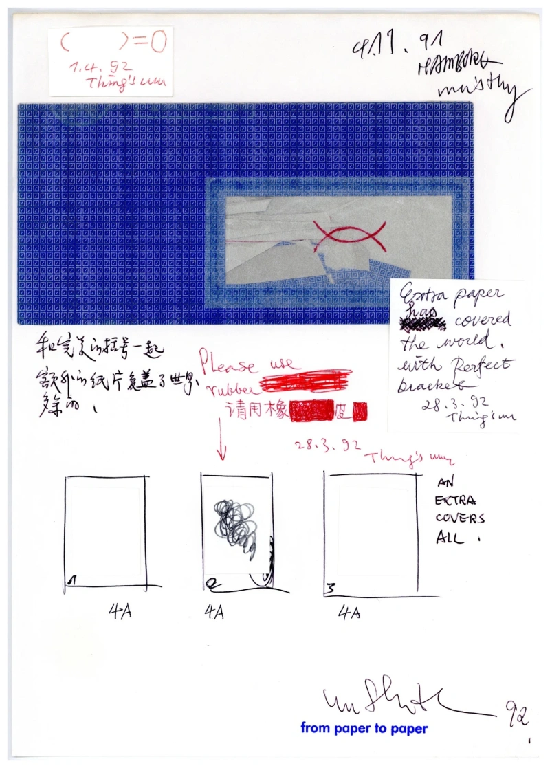 不同于之前在长征空间发生的若干更为项目性的展览:“kuo xuan”(2011)、“起因和从中投射出来的例如物”(2017)、“今天后来成了节日”(2019),本次展览的内容主体,将是从吴与英格过往30余年工作中,精选出的近600张A4纸本创作手稿。
