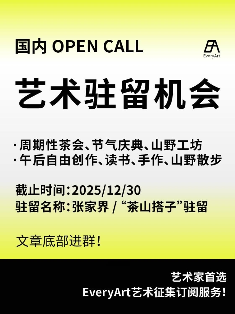 2025-07-16 全球|艺术驻留 #国内艺术驻留 #艺术驻留 0 评论 71 喜欢 分享 白雪松 自我介绍一下吧~ 查看TA的全部内容 +关注 EveryArt 去发现更多有趣内容 微信扫码打开EveryArt小程序 体验更多「EveryArt」新功能 评论 0 我也来讲两句