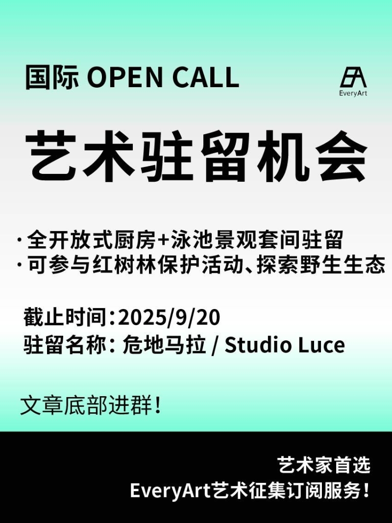 2025-07-28 临期|征集资讯 #艺术驻留 #国际艺术驻留 0 评论 66 喜欢 分享 白雪松 自我介绍一下吧~ 查看TA的全部内容 +关注 EveryArt 去发现更多有趣内容 微信扫码打开EveryArt小程序 体验更多「EveryArt」新功能 评论 0 我也来讲两句