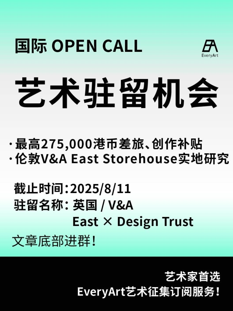 2025-08-04 临期|征集资讯 #艺术驻留 #国际艺术驻留 0 评论 65 喜欢 分享 白雪松 自我介绍一下吧~ 查看TA的全部内容 +关注 EveryArt 去发现更多有趣内容 微信扫码打开EveryArt小程序 体验更多「EveryArt」新功能 评论 0 我也来讲两句