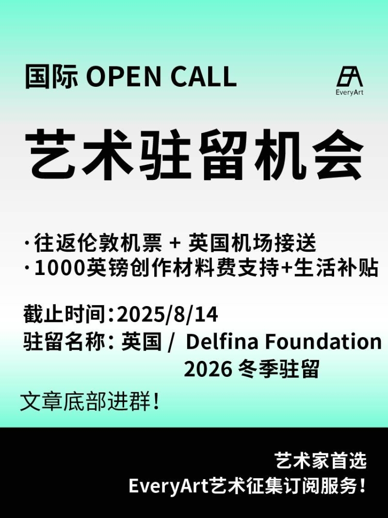 2025-08-07 临期|征集资讯 #艺术驻留 #国际艺术驻留 0 评论 74 喜欢 分享 白雪松 自我介绍一下吧~ 查看TA的全部内容 +关注 EveryArt 去发现更多有趣内容 微信扫码打开EveryArt小程序 体验更多「EveryArt」新功能 评论 0 我也来讲两句