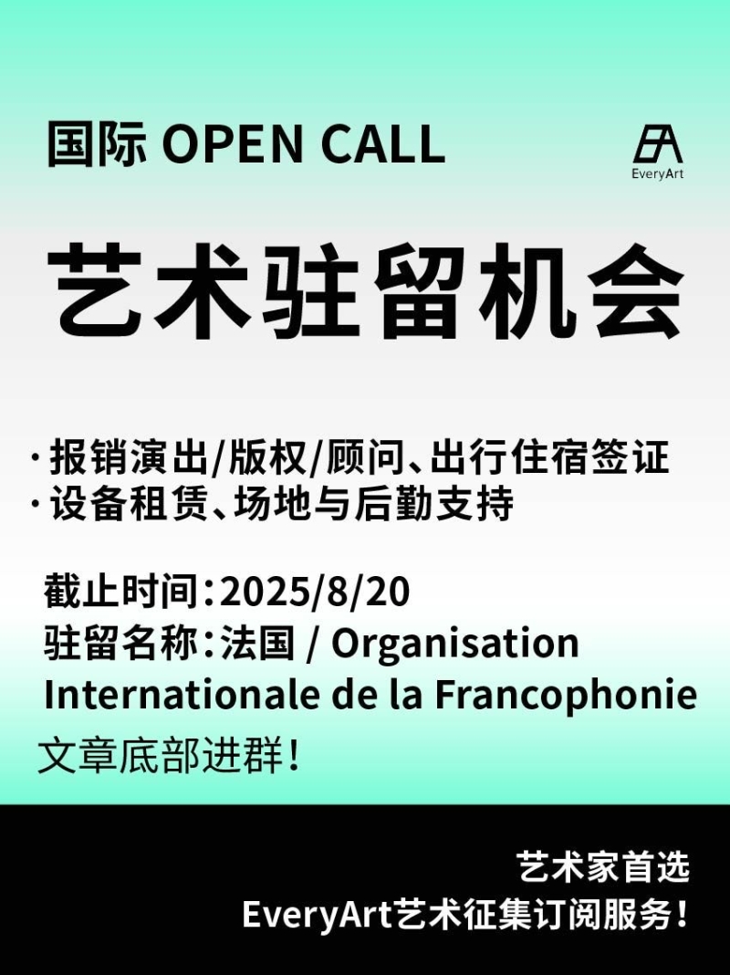 2025-08-07 临期|征集资讯 #艺术驻留 #国际艺术驻留 0 评论 77 喜欢 分享 白雪松 自我介绍一下吧~ 查看TA的全部内容 +关注 EveryArt 去发现更多有趣内容 微信扫码打开EveryArt小程序 体验更多「EveryArt」新功能 评论 0 我也来讲两句