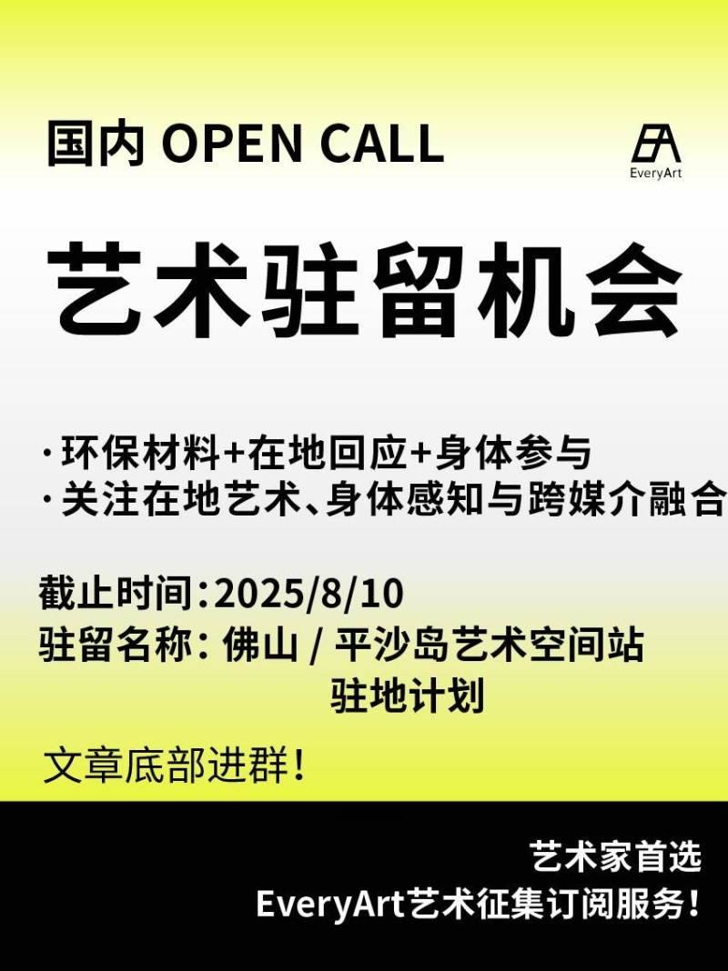 2025-08-07 临期|征集资讯 #国内艺术驻留 #艺术驻留 0 评论 80 喜欢 分享 白雪松 自我介绍一下吧~ 查看TA的全部内容 +关注 EveryArt 去发现更多有趣内容 微信扫码打开EveryArt小程序 体验更多「EveryArt」新功能 评论 0 我也来讲两句