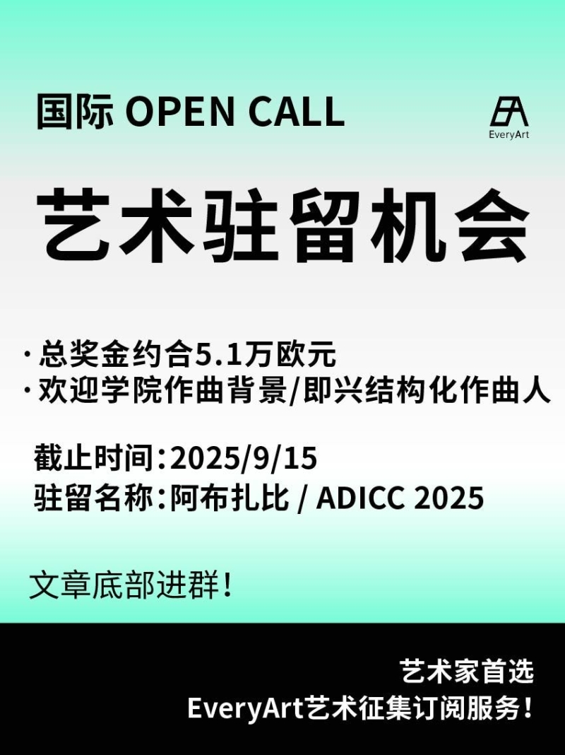 2025-08-10 临期|征集资讯 #艺术驻留 #国际艺术驻留 0 评论 63 喜欢 分享 白雪松 自我介绍一下吧~ 查看TA的全部内容 +关注 EveryArt 去发现更多有趣内容 微信扫码打开EveryArt小程序 体验更多「EveryArt」新功能 评论 0 我也来讲两句