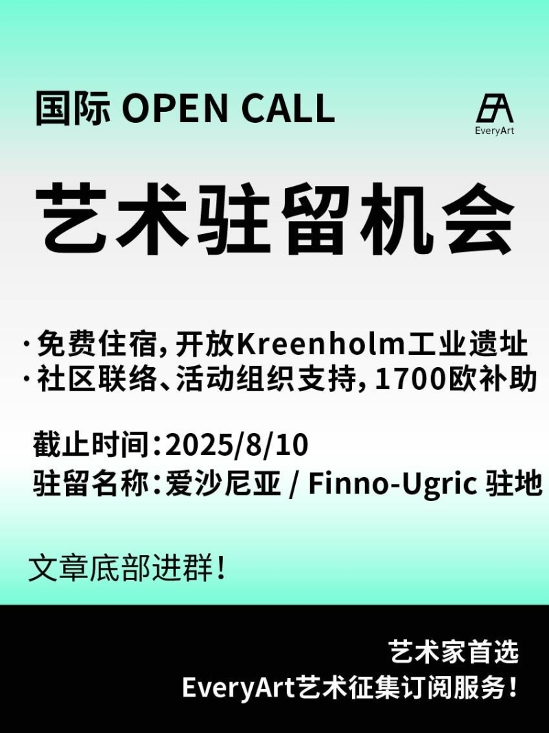2025-08-10 临期|征集资讯 #艺术驻留 #国际艺术驻留 0 评论 72 喜欢 分享 白雪松 自我介绍一下吧~ 查看TA的全部内容 +关注 EveryArt 去发现更多有趣内容 微信扫码打开EveryArt小程序 体验更多「EveryArt」新功能 评论 0 我也来讲两句