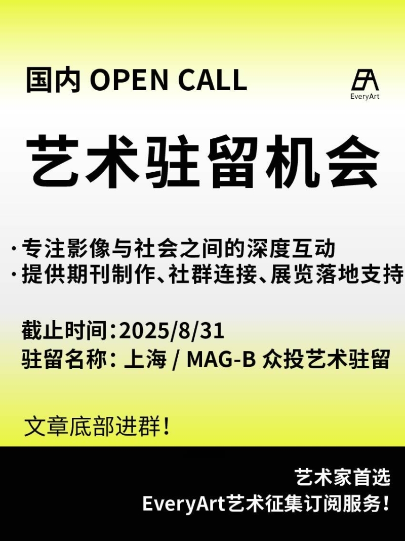 2025-08-10 临期|征集资讯 #国内艺术驻留 #艺术驻留 0 评论 81 喜欢 分享 白雪松 自我介绍一下吧~ 查看TA的全部内容 +关注 EveryArt 去发现更多有趣内容 微信扫码打开EveryArt小程序 体验更多「EveryArt」新功能 评论 0 我也来讲两句
