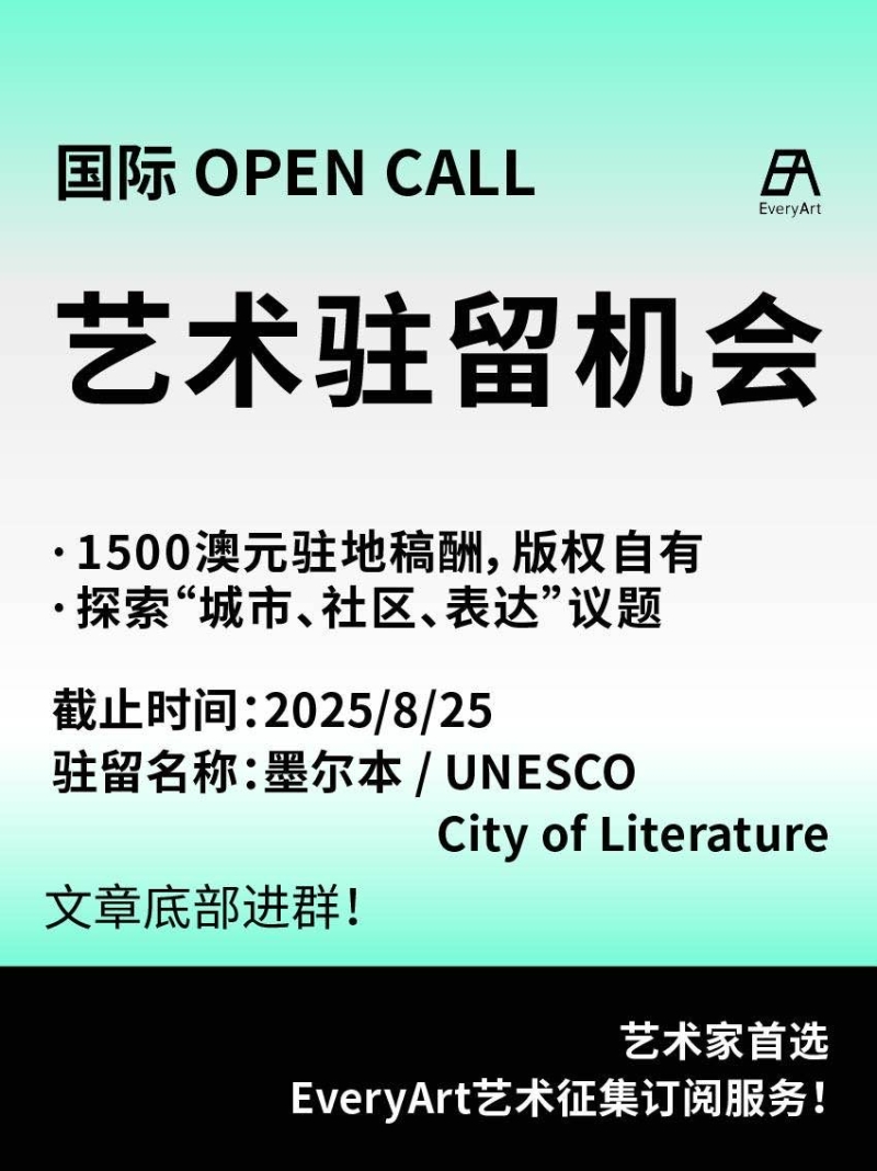 2025-08-12 临期|征集资讯 #艺术驻留 #国际艺术驻留 0 评论 80 喜欢 分享 白雪松 自我介绍一下吧~ 查看TA的全部内容 +关注 EveryArt 去发现更多有趣内容 微信扫码打开EveryArt小程序 体验更多「EveryArt」新功能 评论 0 我也来讲两句