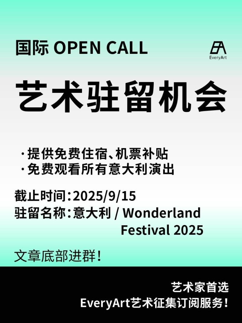 2025-08-15 临期|征集资讯 #艺术驻留 #国际艺术驻留 0 评论 69 喜欢 分享 白雪松 自我介绍一下吧~ 查看TA的全部内容 +关注 EveryArt 去发现更多有趣内容 微信扫码打开EveryArt小程序 体验更多「EveryArt」新功能 评论 0 我也来讲两句