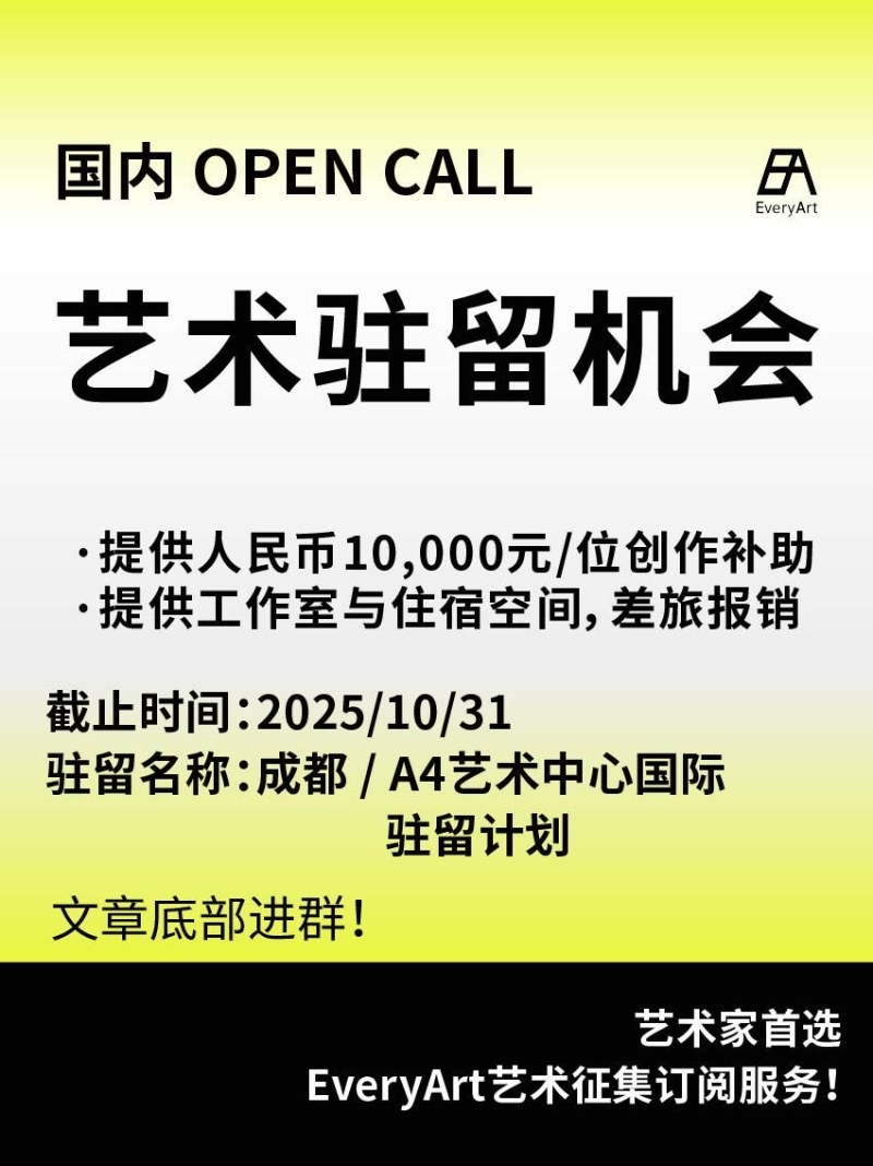 2025-08-15 临期|征集资讯 #国内艺术驻留 #艺术驻留 0 评论 85 喜欢 分享 白雪松 自我介绍一下吧~ 查看TA的全部内容 +关注 EveryArt 去发现更多有趣内容 微信扫码打开EveryArt小程序 体验更多「EveryArt」新功能 评论 0 我也来讲两句