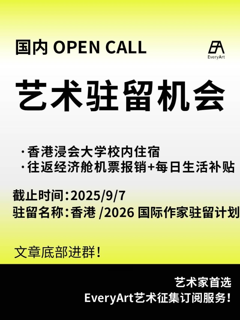 2025-08-15 临期|征集资讯 #国内艺术驻留 #艺术驻留 0 评论 77 喜欢 分享 白雪松 自我介绍一下吧~ 查看TA的全部内容 +关注 EveryArt 去发现更多有趣内容 微信扫码打开EveryArt小程序 体验更多「EveryArt」新功能 评论 0 我也来讲两句